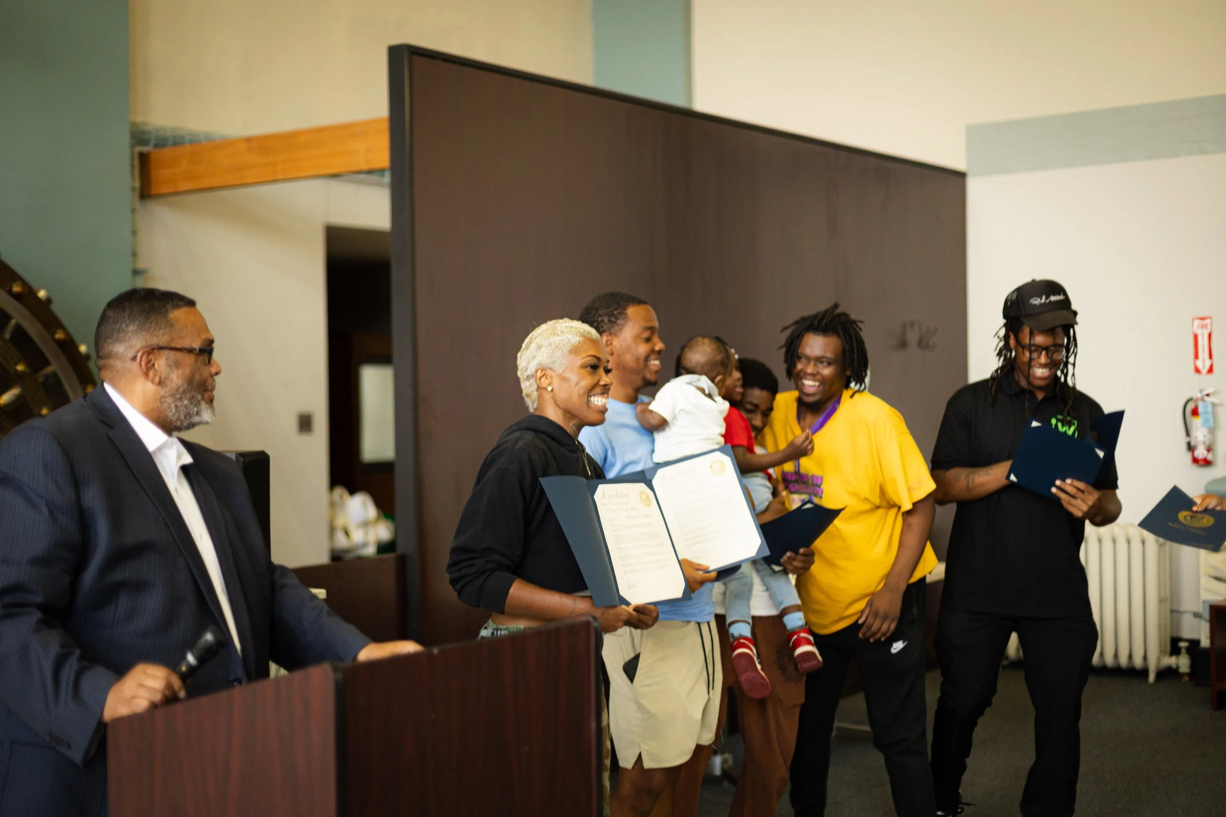 We welcome Alderman Taliaferro into the space to honor members of the initiative and introduce the official resolution. -